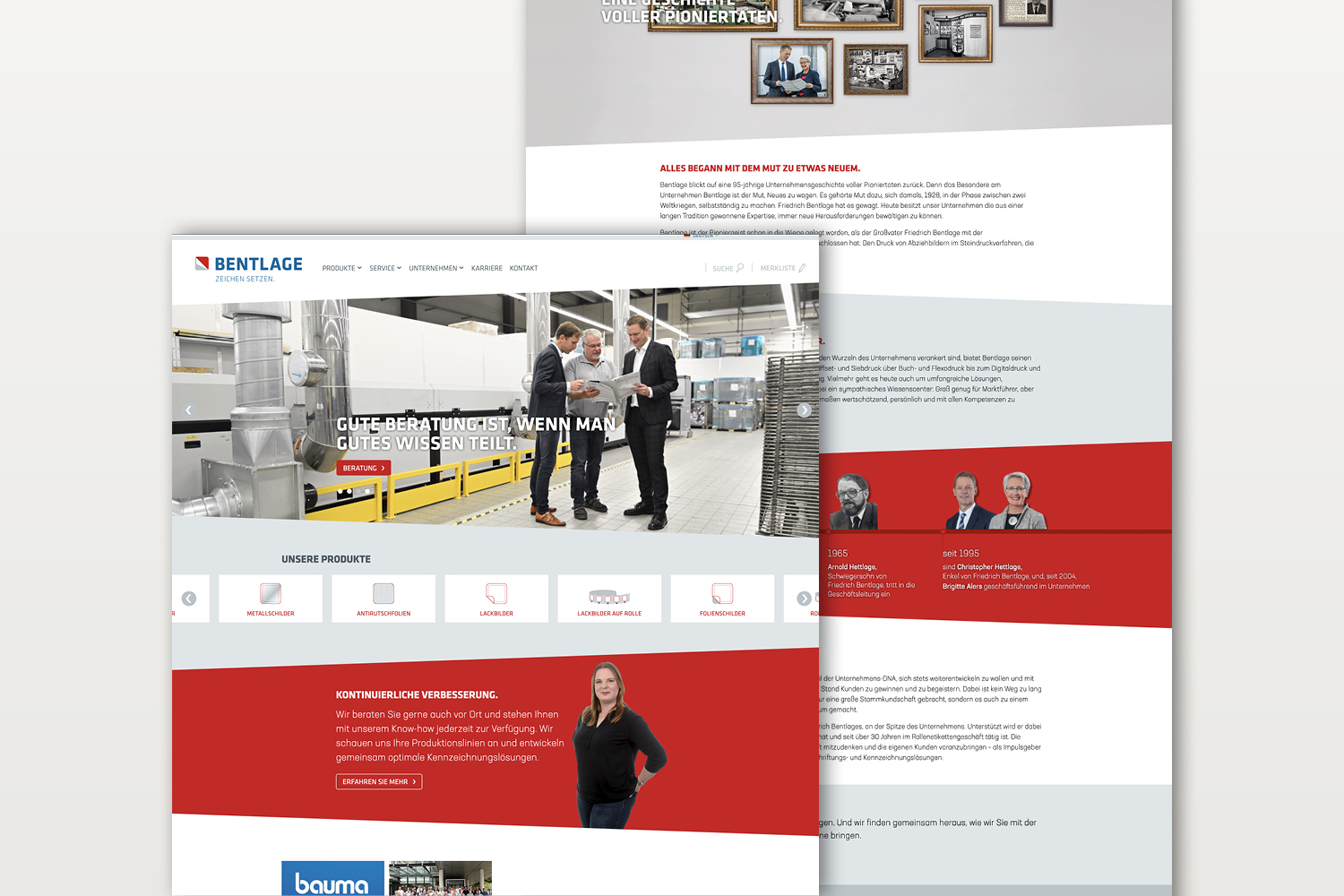 Bent­lage, ein mit­tel­stän­di­sches Fami­li­en­un­ter­nehmen, ist spe­zia­li­siert auf die Her­stel­lung von tech­ni­schen und deko­ra­tiven Beschrif­tungs- und Kenn­zeich­nungs­lö­sungen. Das Agen­tur­team von VISIO hat das Unter­nehmen mit einer neuen Mar­ken­po­si­tio­nie­rung, einem kom­plett über­ar­bei­teten Cor­po­rate Design und einer neuen Brand Story dabei unter­stützt, sich für zukünf­tige Her­aus­for­de­rungen des Marktes neu auf­zu­stellen.