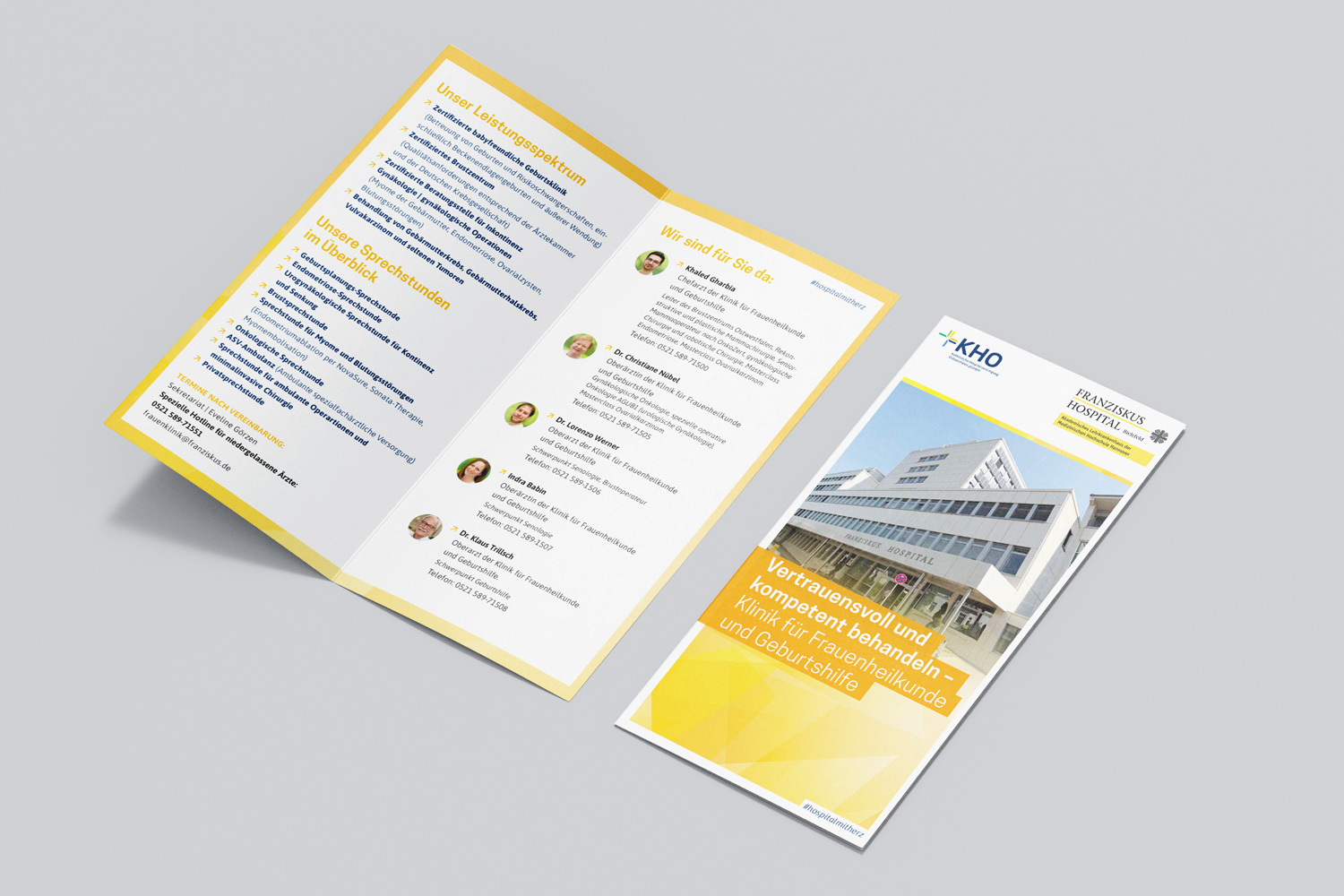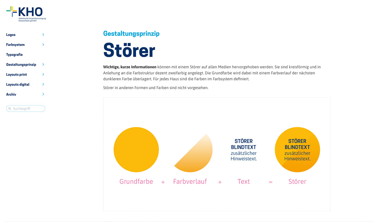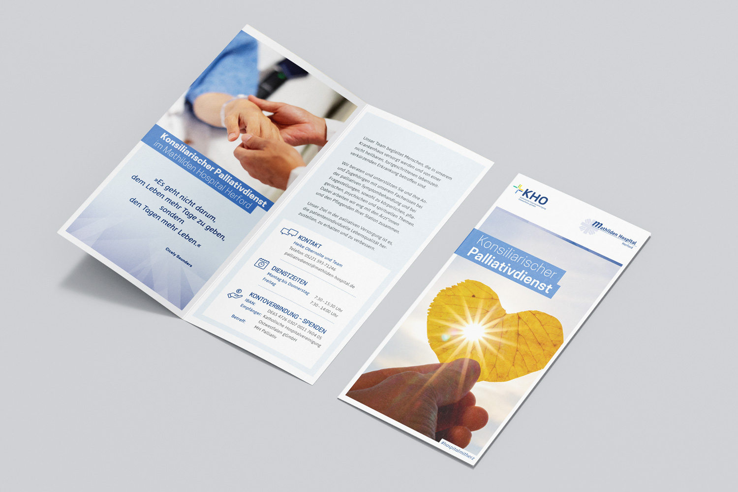 Das Cor­po­rate Design der KHO wird auf die Medien aller sechs Kran­ken­häuser ange­wendet. Die gestal­te­ri­schen Prin­zi­pien bleiben dabei ein­heit­lich – jedes Haus tritt jedoch in seinem eigenen Farb­klang und mit seinem indi­vi­du­ellen Logo auf.