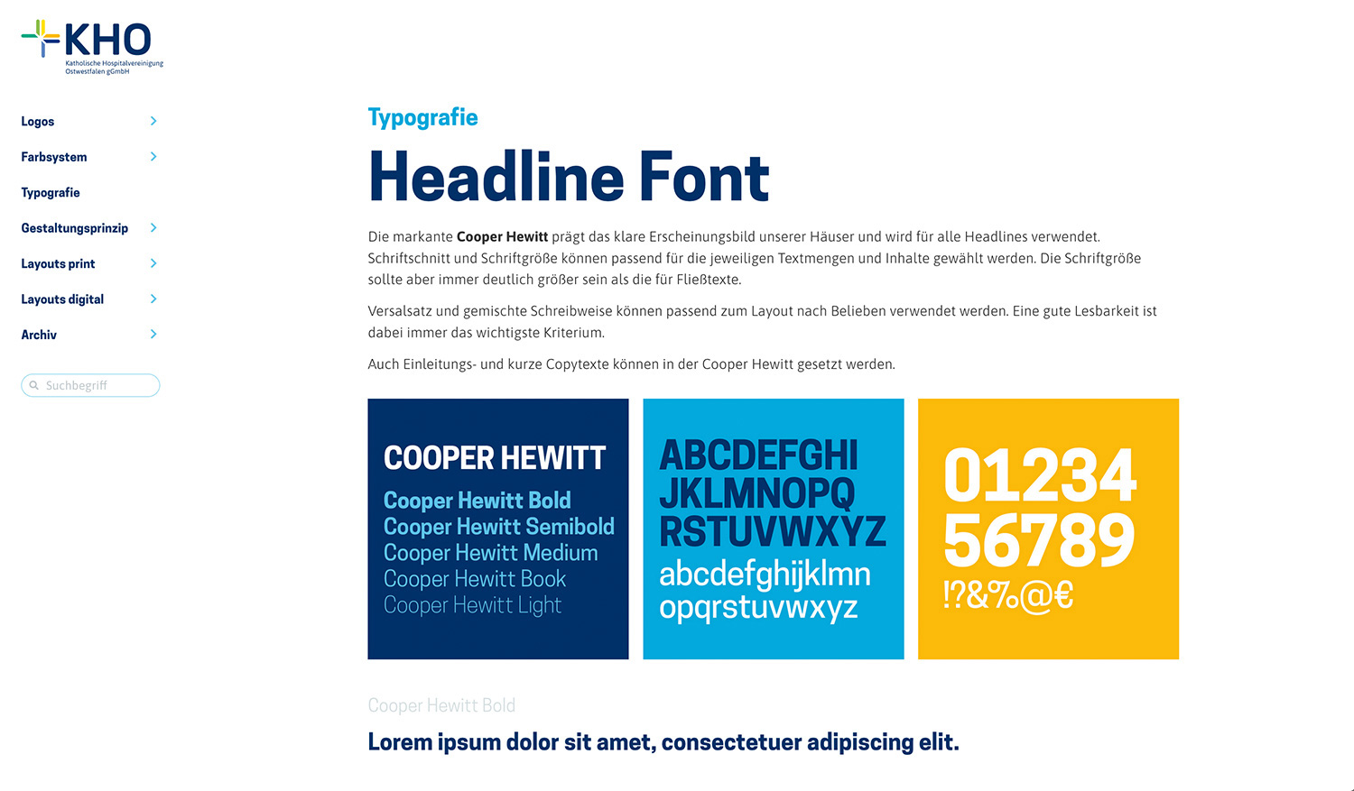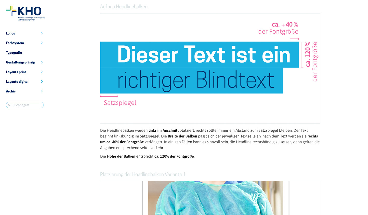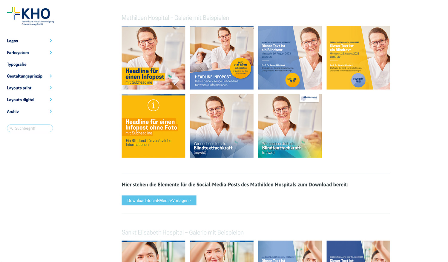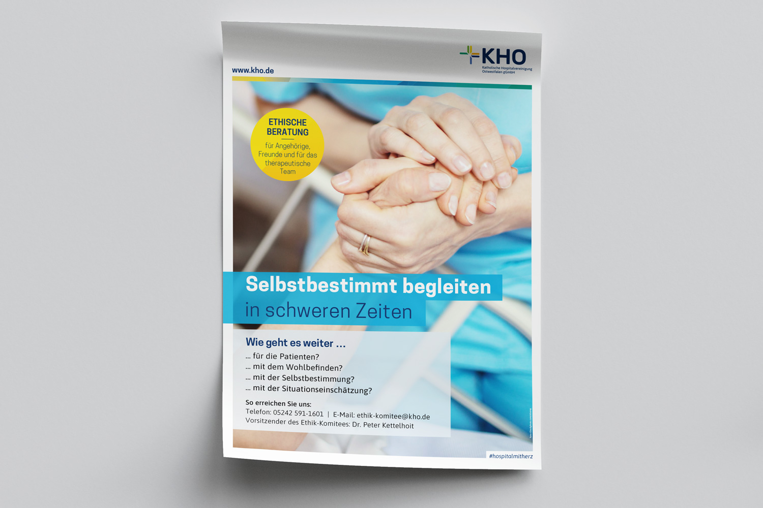 Die KHO ist ein Zusam­men­schluss von sechs Kran­ken­häu­sern in Ost­west­falen-Lippe. Jedes Haus tritt mit eigenem Namen und Logo auf, wäh­rend ein ein­heit­li­ches Cor­po­rate Design die gemein­same Zuge­hö­rig­keit sichtbar macht. Gleich­zeitig ist das Gestal­tungs­system so fle­xibel ange­legt, dass es sich an unter­schied­liche Medien und Anlässe anpassen lässt, ohne uni­form zu wirken.