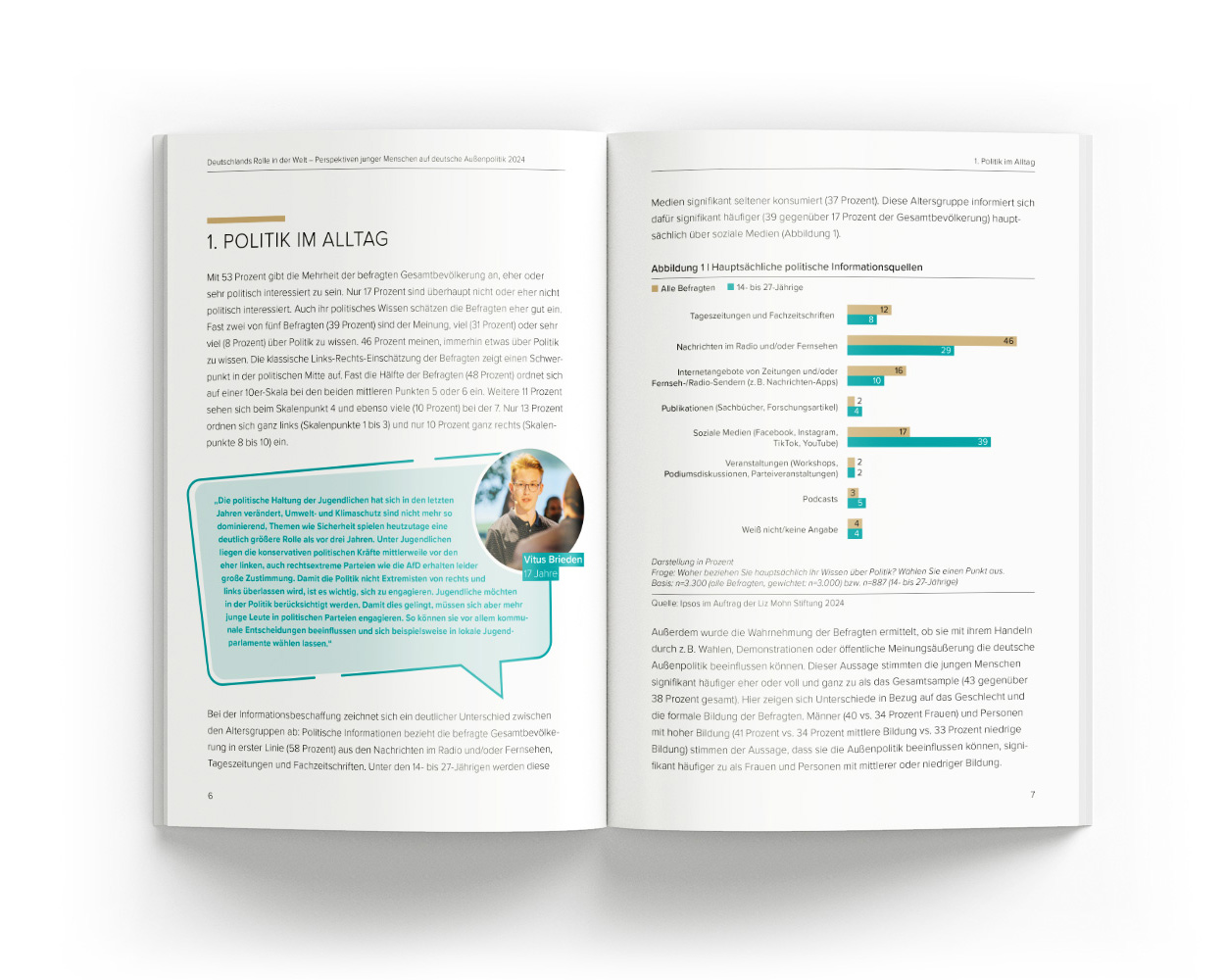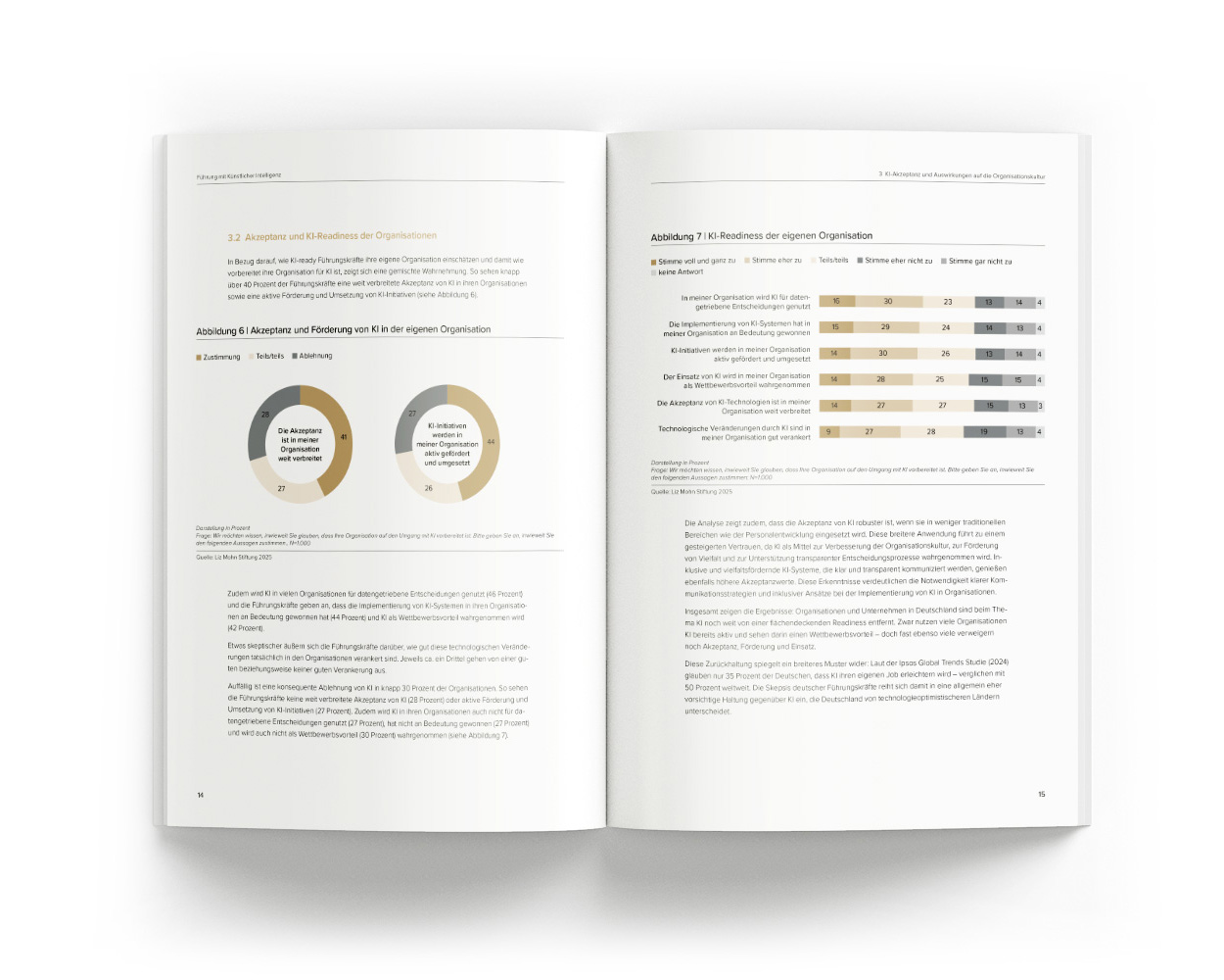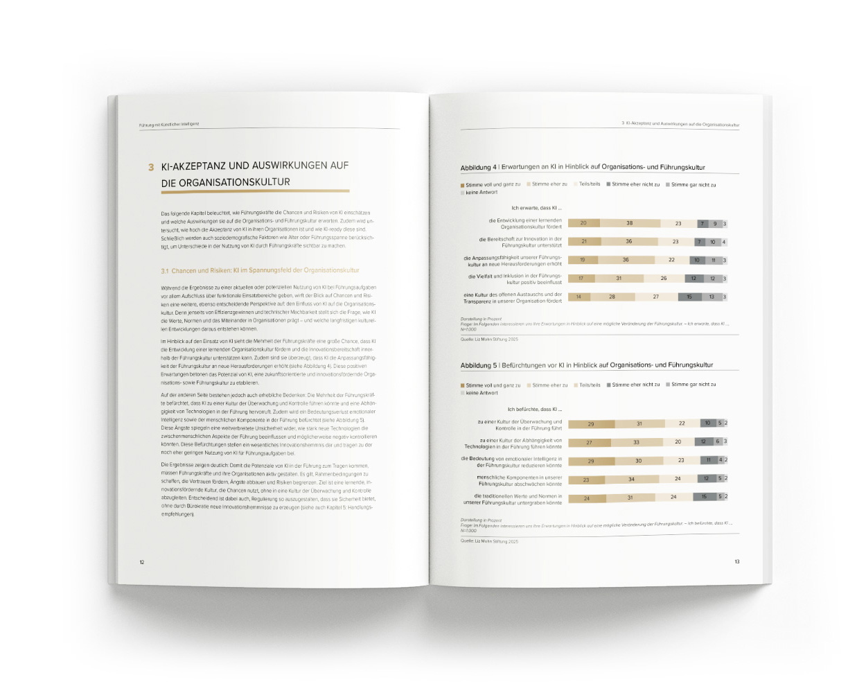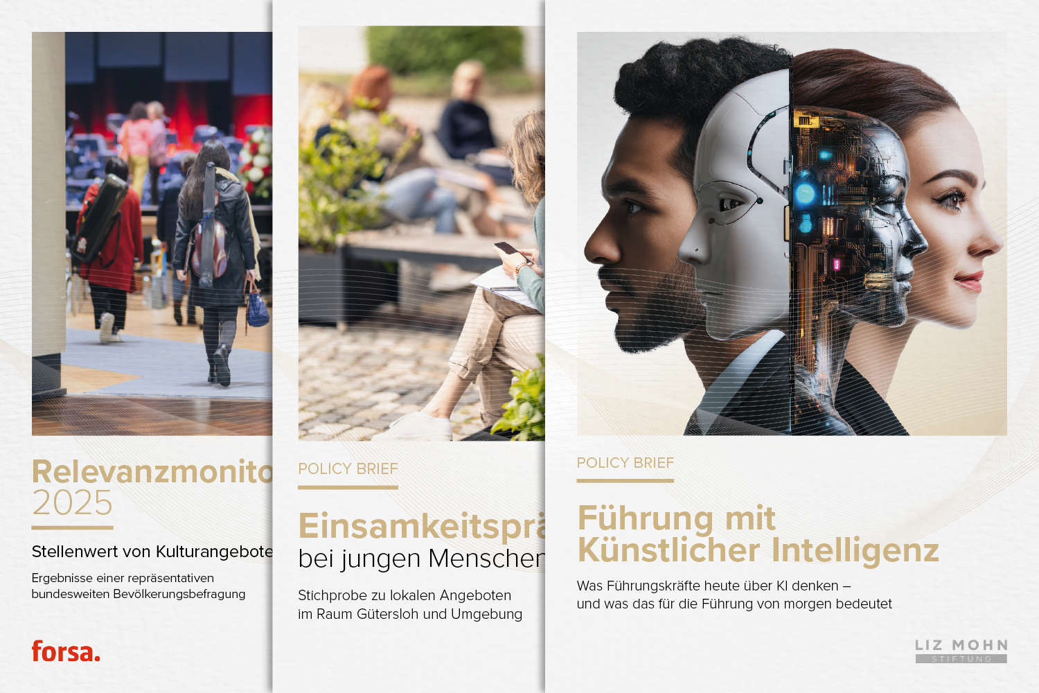 Die Liz Mohn Stiftung veröffentlicht regelmäßig Studien zu den Themenbereichen internationale Beziehungen, Führung und Wirtschaft, Kultur und Musik sowie junge Menschen. Zudem präsentiert sie sich bei Veranstaltungen zu diesen Themen.