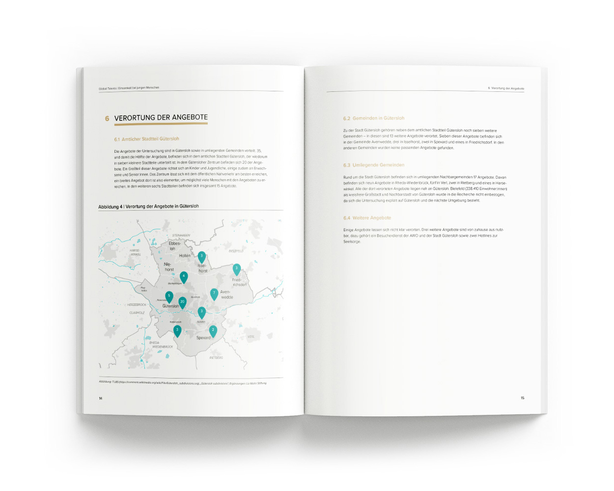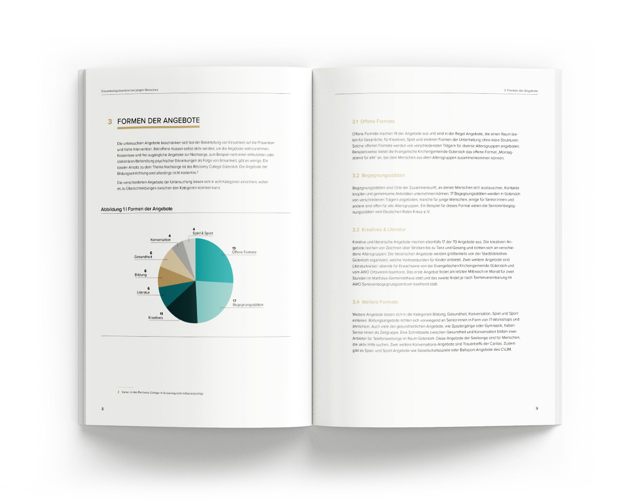 Auf der Basis bereits vorhandener Corporate-Design-Ansätze wurde ein einheitliches Broschürendesign in DIN A4 und DIN A5 entwickelt, ergänzend entstanden Vorgaben für unterschiedliche Grafiken und Tabellen. Themenspezifische Gestaltungselemente werden bei Bedarf neu konzipiert.