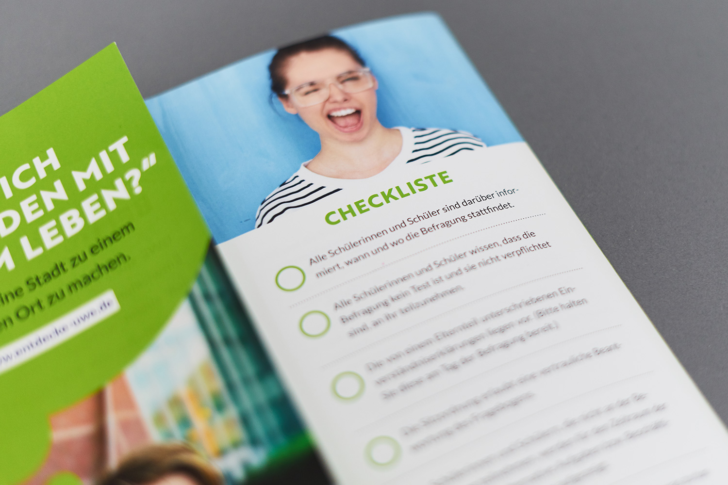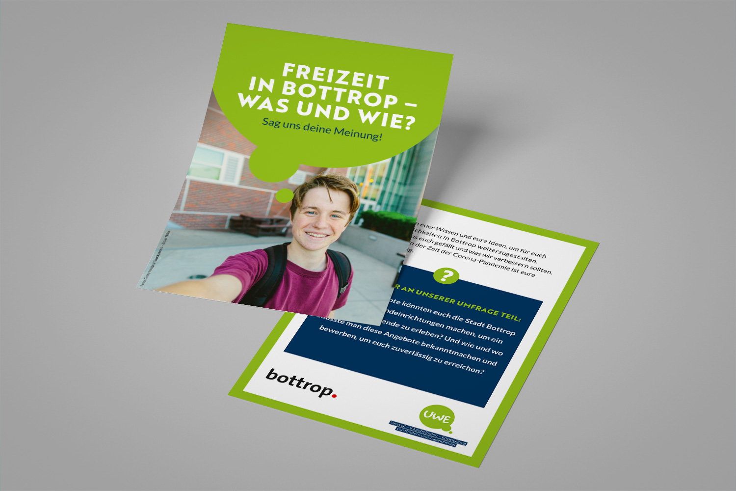 Neben all­ge­meinen Fol­dern in unter­schied­li­chen For­maten sind auch Design­vor­lagen für DIN-A5-Flyer ent­standen, die für teil­neh­mende Städte ein­fach ini­vi­duell ange­passt werden können.